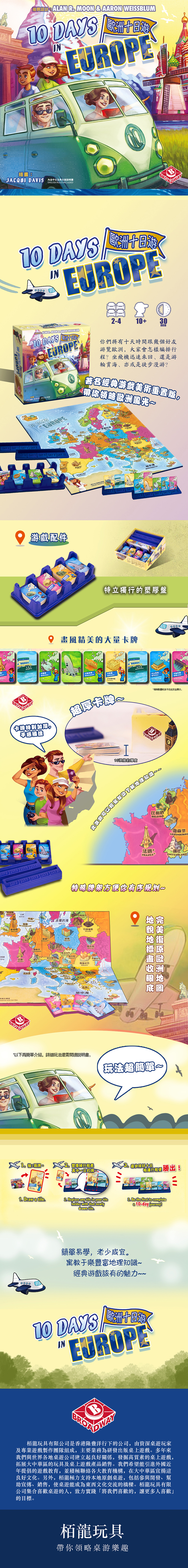 繼美國十日遊後,今次的主角是歐洲。玩家們一樣是需要用卡牌拼出十天的歐洲旅程。更重要的是它可以與美國十日遊合併遊玩,令玩家可以用20天遊走歐美大地。